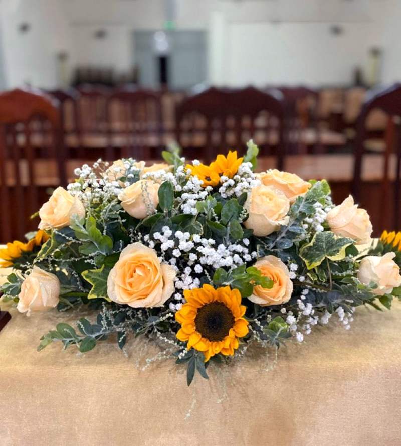 Hoa tặng sự kiện (+20 bó) – 10898 là lựa chọn tuyệt vời cho các dịp sự kiện quan trọng như khai trương, khánh thành, hội nghị, với những loài hoa mang ý nghĩa may mắn và tài lộc. Sự kết hợp giữa hoa đồng tiền vàng, cát tường xanh, hồng vàng ánh trăng và môn xanh tạo nên một bó hoa vô cùng ý nghĩa, đầy sức sống và hy vọng vào tương lai tươi sáng. Những sắc màu vàng của tài lộc và xanh của khát vọng, cùng với ý nghĩa tốt đẹp của các loài hoa, sẽ là món quà tuyệt vời dành tặng các vị đại biểu tham gia sự kiện của bạn.